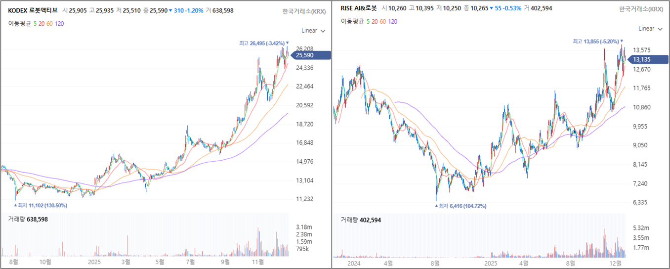 로봇주는 변동성이 매우 큽니다. 안정성을 원한다면 ETF, 고수익을 노린다면 기술적 해자가 있는 부품주에 집중하십시오.